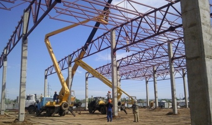 Монтаж металлоконструкций и сэндвич-панелей.